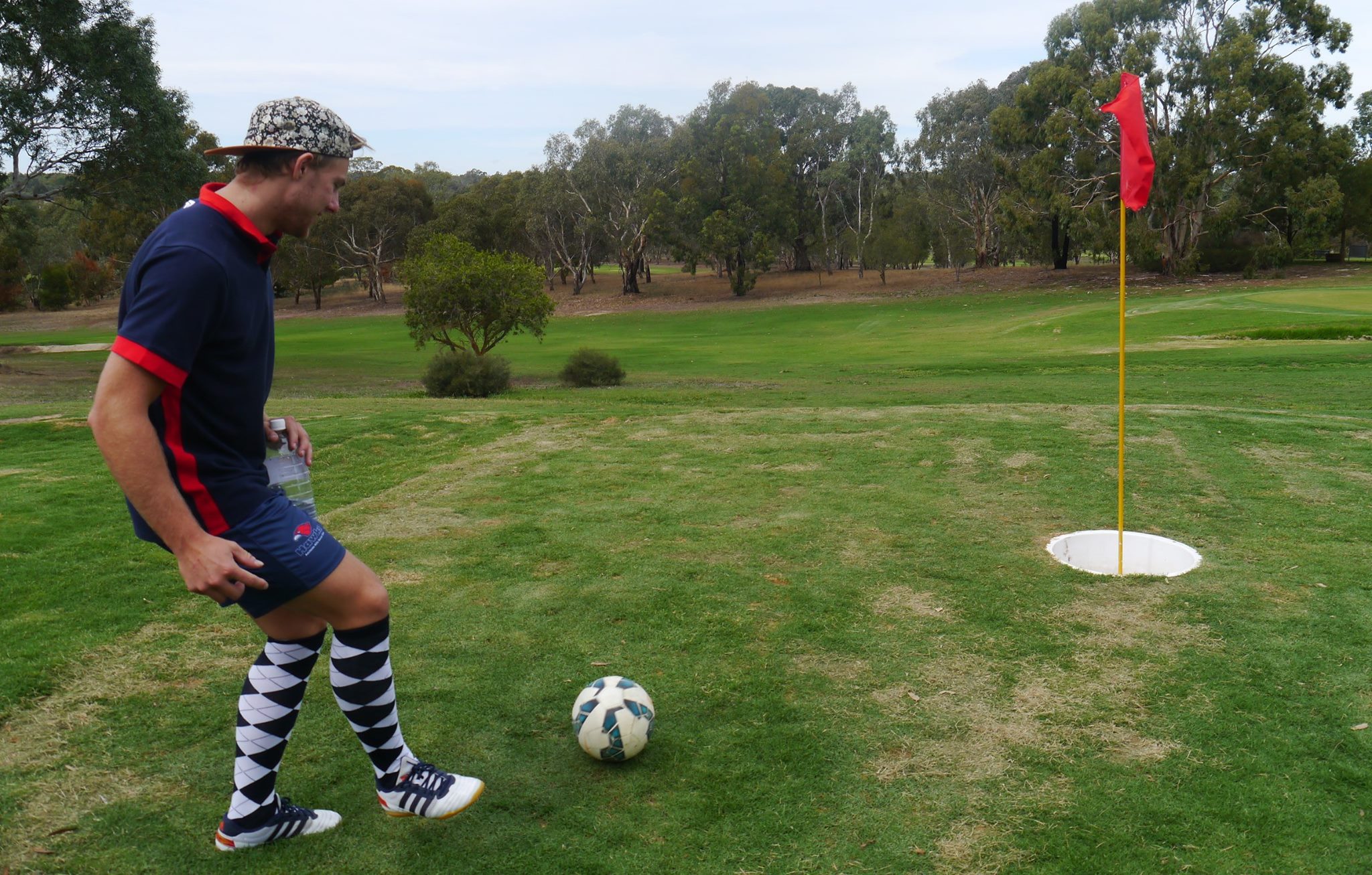 Based on the game of golf and with many of the same rules, FootGolf is played by kicking a size 5 (U/12 size 4) football from the teeblock until successfully sinking the ball in the large 53 cm diameter hole. The course is 1430m; with a par of 36 for 9 holes.